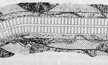 Carte topographique de Valles Marineris, la flèche indique la présence d'écoulements saisonniers.