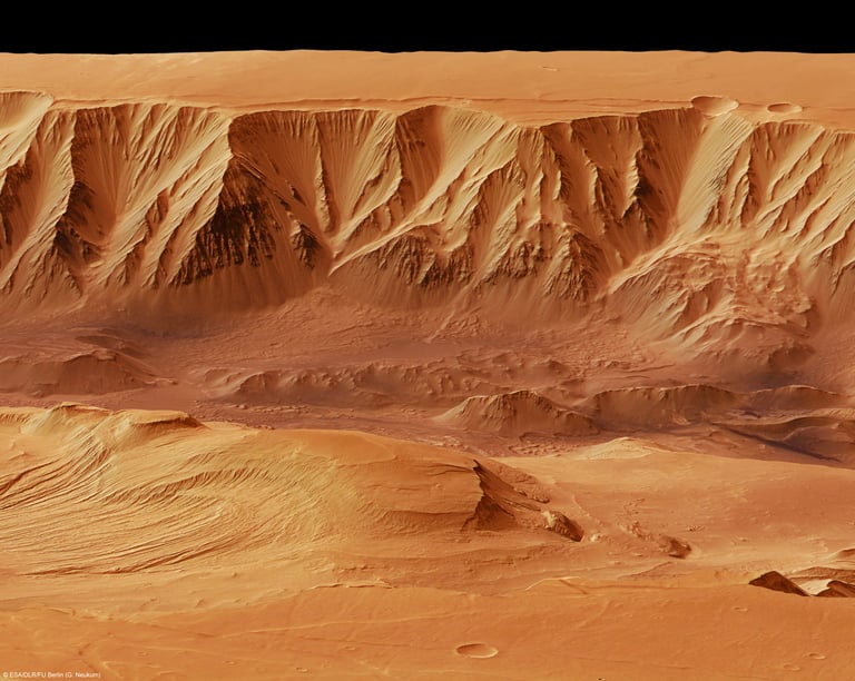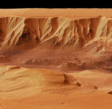 Ce site a été sélectionné pour ses avantages techniques et géologiques majeurs. Situé à 4 800 mètres sous le niveau moyen martien, il bénéficie d'une pression atmosphérique plus élevée, ce qui facilite la récolte de gaz atmosphériques et sécurise les atterrissages par parachute. Sa position équatoriale maximise l'intensité solaire pour les cultures et facilite l'accès aux orbites. Au-delà de l'aspect technique, le site offre un panorama spectaculaire de falaises de 8 kilomètres de haut, ce qui est crucial pour le moral des colons. Ces parois imposantes procurent également un sentiment réel et perçu de protection contre l'environnement hostile de la planète rouge.