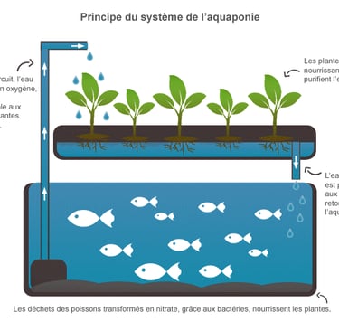 Pour aller plus loin, cette structure inspirée de l'Apple Park pourrait intégrer un système d'aquaponie, créant un cycle de vie complet où les poissons et les plantes se nourrissent mutuellement. Ce circuit fermé permettrait une minimalisation extrême des pertes d'eau, avec un taux de récupération atteignant 98 %. Cette performance est rendue possible par le recyclage automatique opéré par l'aquaponie, qui constitue la méthode la plus pratique et efficace pour filtrer et réutiliser l'eau en continu mais elle nécessite un entretien constant (ajustement du pH, retrait des boues) avec des filtres et des renouvellements partiels (changer 10 à 20 % de l'eau de temps en temps) pour éviter que le système ne s'empoisonne lui-même.