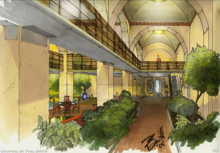 L'organisation de la colonie adopte le modèle de la « Cité Linéaire », inspiré par Arturo Soria et Le Corbusier, structuré en deux bandes parallèles connectées à intervalles réguliers. Cette configuration assure une redondance critique : chaque segment dispose de plusieurs sorties de secours et peut être isolé en cas de dépressurisation sans rompre la circulation globale de la base.